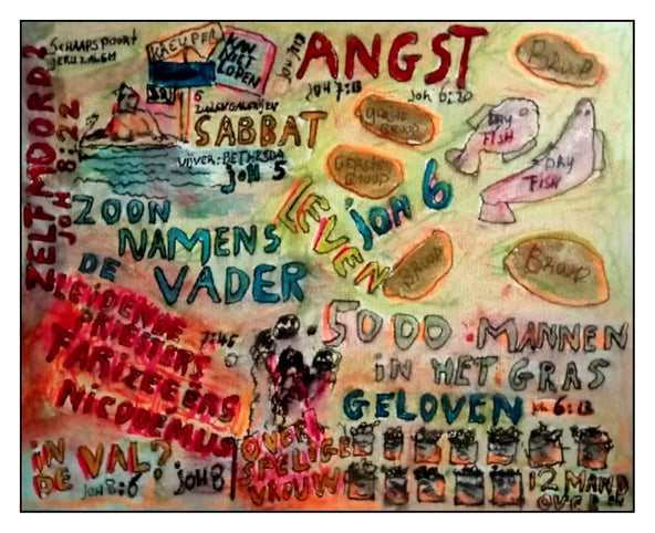 Hieronder zie je twee afbeeldingen van de eerste officiele verhaal tekeningen die ik maakte naar aanleiding van het boek van Johannes