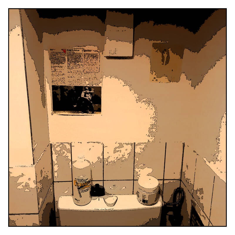 Misschien niet erg opzienbarend, maar de wc-verlichting komt via een officiele dokalamp die mogelijk zelf gemaakt was door de maker ervan. Die man was meneer Wim Vink uit Zoetermeer, een vriendelijke oudere man die helaas zijn vrouw was verloren en een nieuwe vriendin op een andere locatie had gevonden. Hij wilde me zijn etage graag in onderhuur aanbieden en ik heb daar dankbaar gebruik van willen maken. Ik had het immers mee kunnen maken dat ik in het jaar 2003 werkelijk mijn eigen huis kon worden uitgezet onder bedreiging van de politie.
