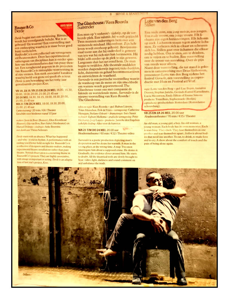HERE'S AN ANNOUNCEMENT OF A THEATER PERFORMANCE OF LOTTE VAN DEN BERG THE DAUGHTER OF JOZEF VAN DEN BERG AND THAT WAS ONE OF THE MOST IMPORTANT PUPPLIERS IN THE NETHERLANDS AN ACTOR WHO EVEN TAKEN SPECIAL QUESTION BY THE KNOWN "HOLLAND FESTIVAL" FOR A WERDLAND FESTIVAL TO WRITE FOR. I ALSO HAD TO KNOW LOTTE AS FINALLY A VERY SPECIAL THEATER MAKER WITH VERY EXCEPTIONAL PERFORMANCES OF WHICH I WANT TO SEE SEVERAL OF THEM. I SAW THAT A GREAT TALENT COULD BE TRANSFERRED FROM FATHER TO DAUGHTER HERE